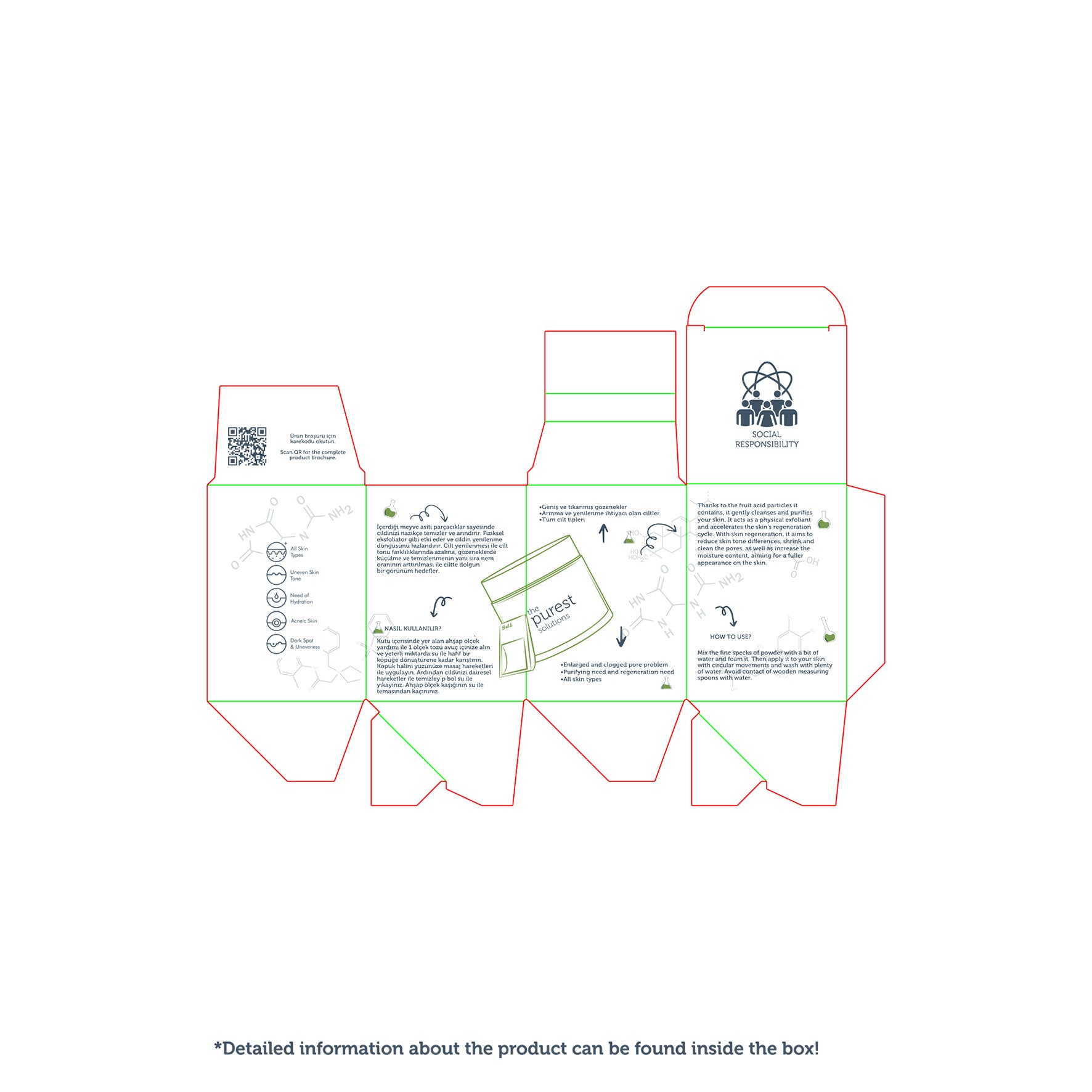 • It is an exfoliant with fruit particles that gently cleanses and purifies the skin and accelerates the skin’s regeneration cycle.