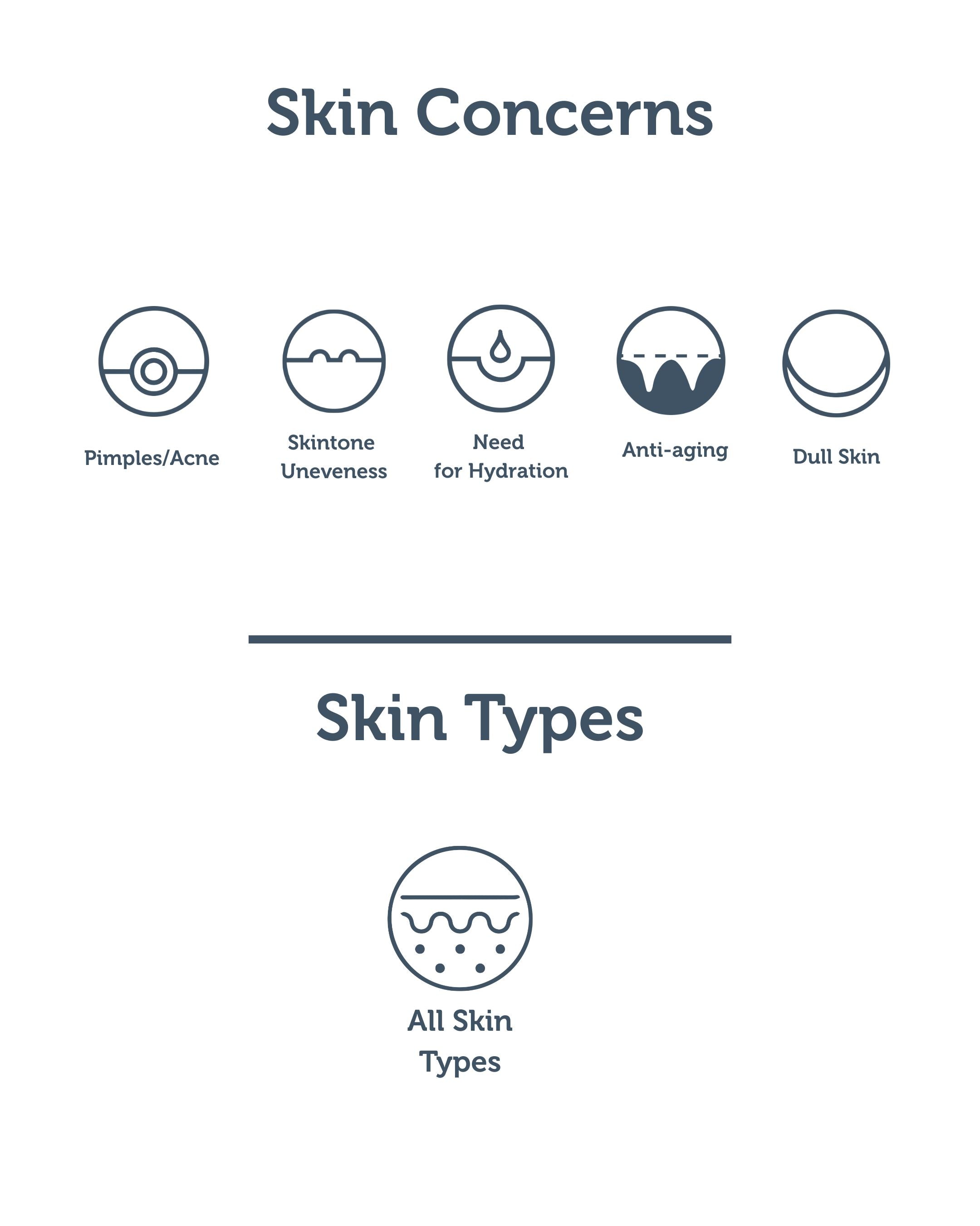 Regular use of these products will help in dealing with skin issues such as need for hydration, uneven skintone, acne problems, pore problems, anti-aging, and dull appearance.