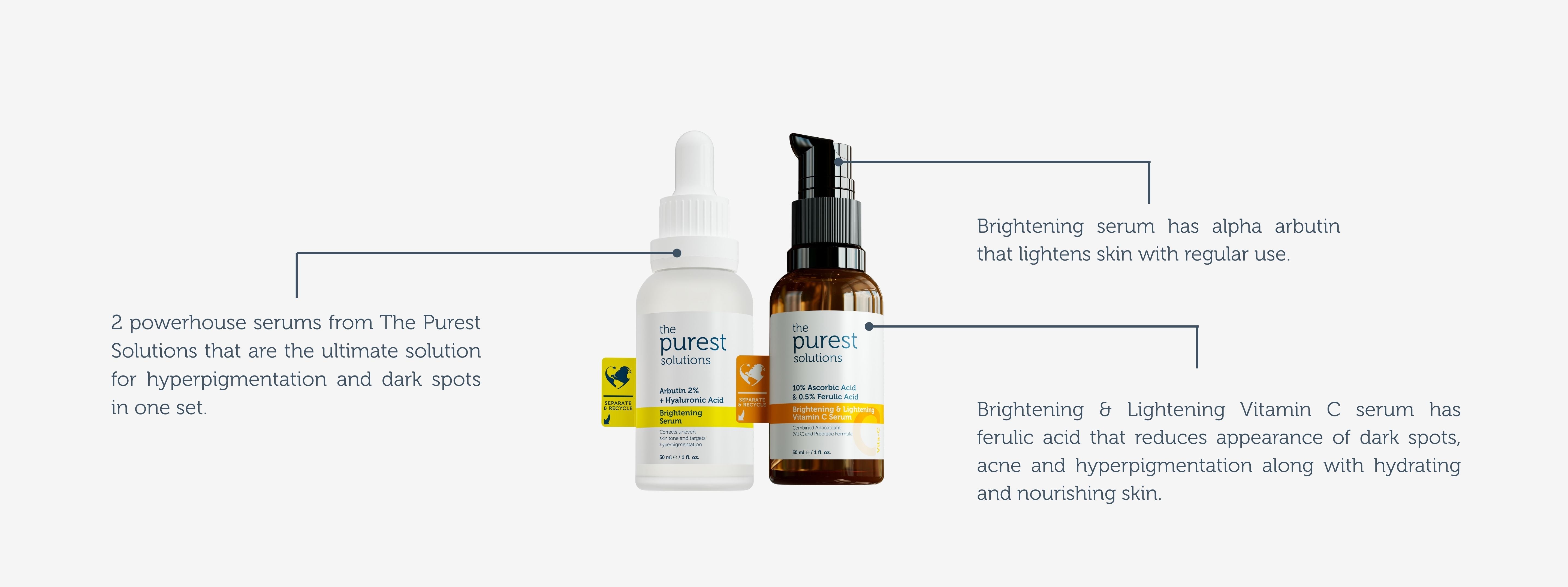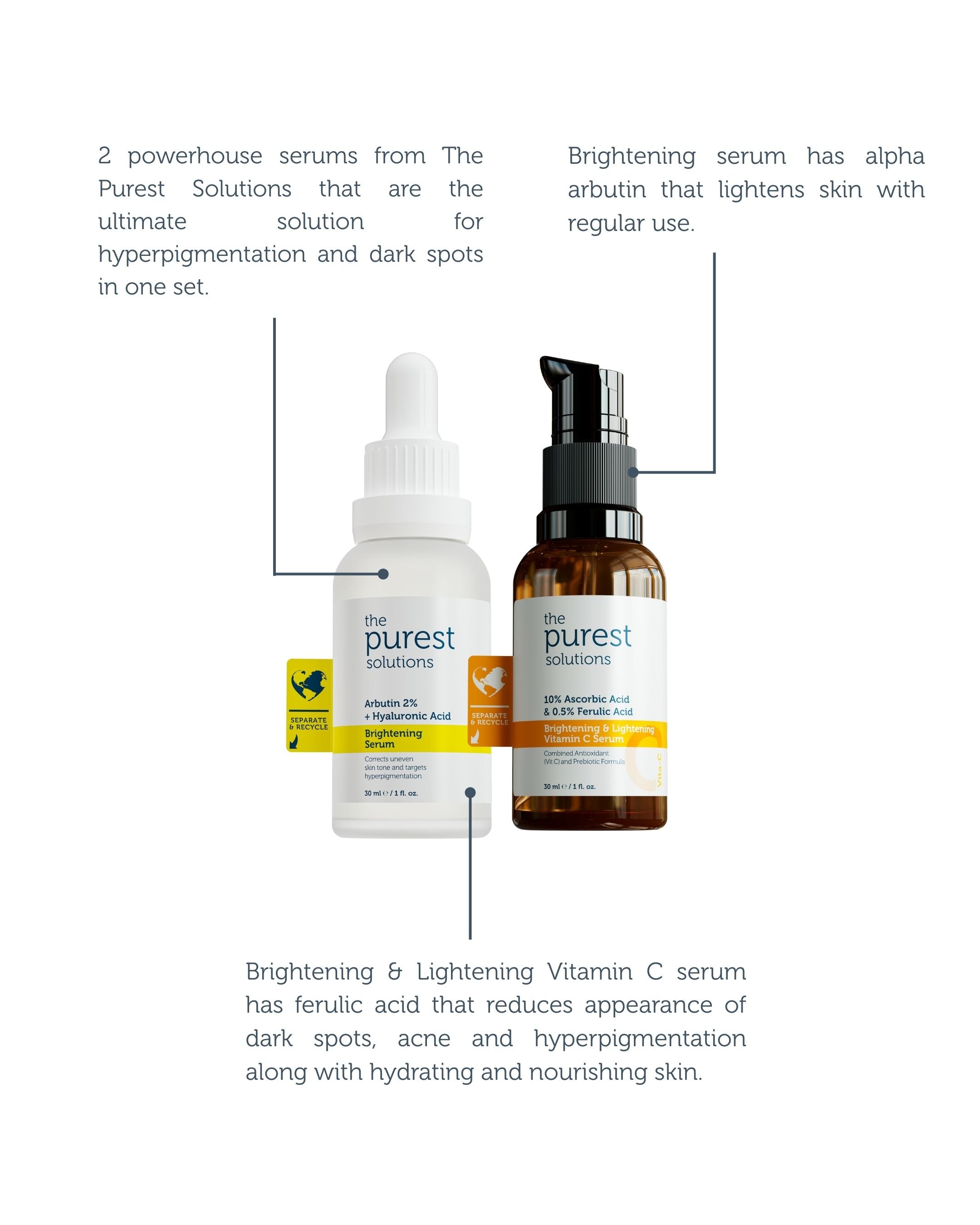 The products in this set contain Alpha Arbutin, Hyaluronic Acid, Ferulic Acid, Ascorbic Acid and Glycerin as their active ingredients.