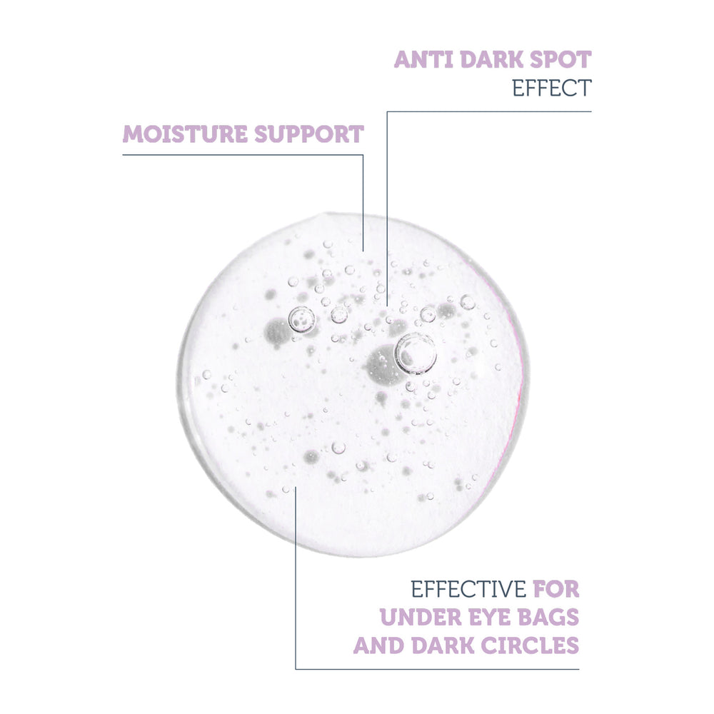 The serum contains 5% caffeine and vitamin C. Both substances have a brightening effect and can soothe and conceal dark circles. Of course, they do not combat the root cause, such as deficiencies, lack of sleep, or genetics, but they can be very supportive.