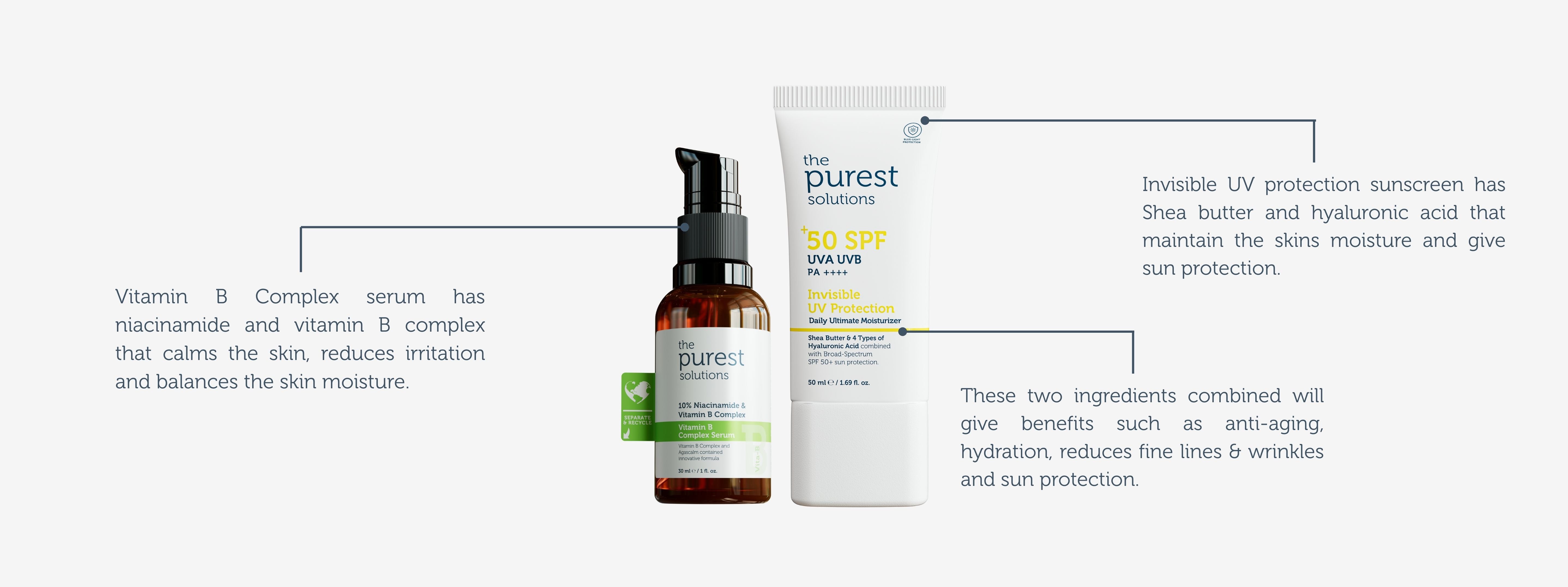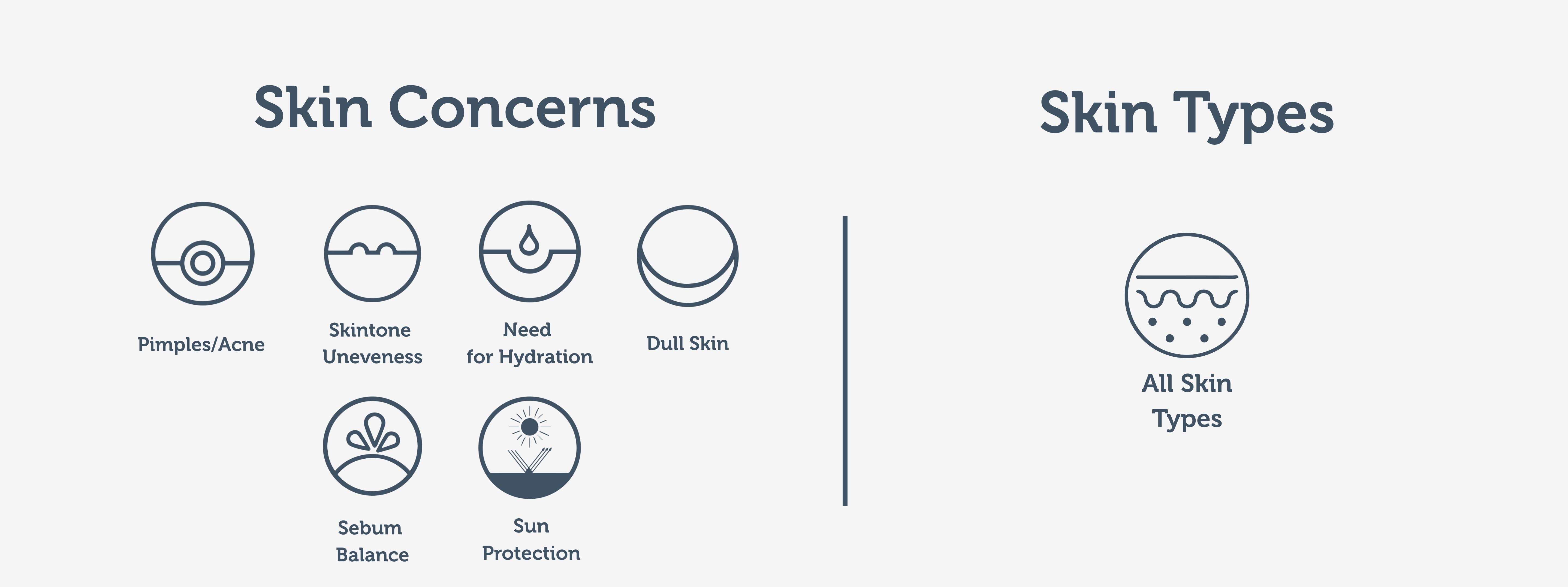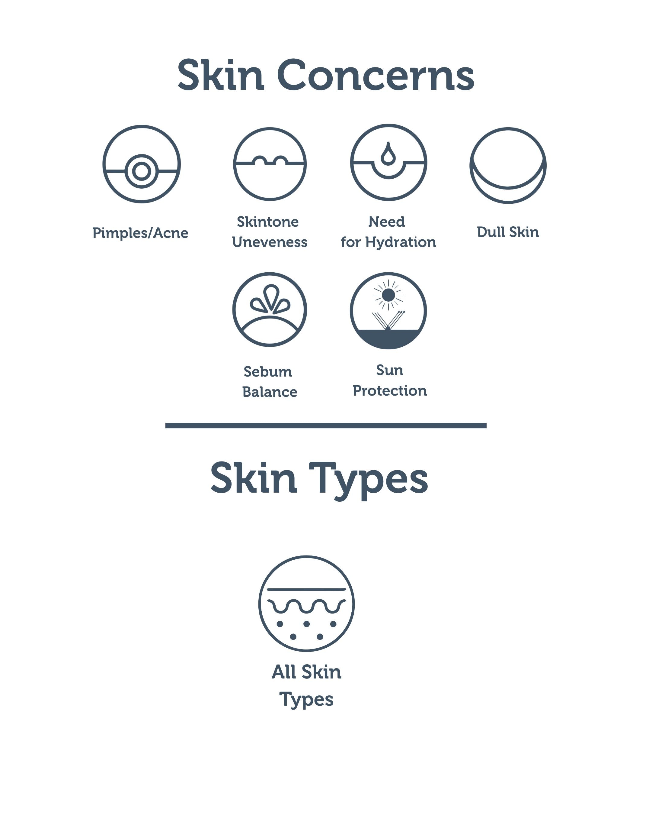 Regular use of these products will help in solving problems such as acne problems, sebum balance, anti-aging, need for hydration, appearance of full skin, skintone unevenness and UV protection.