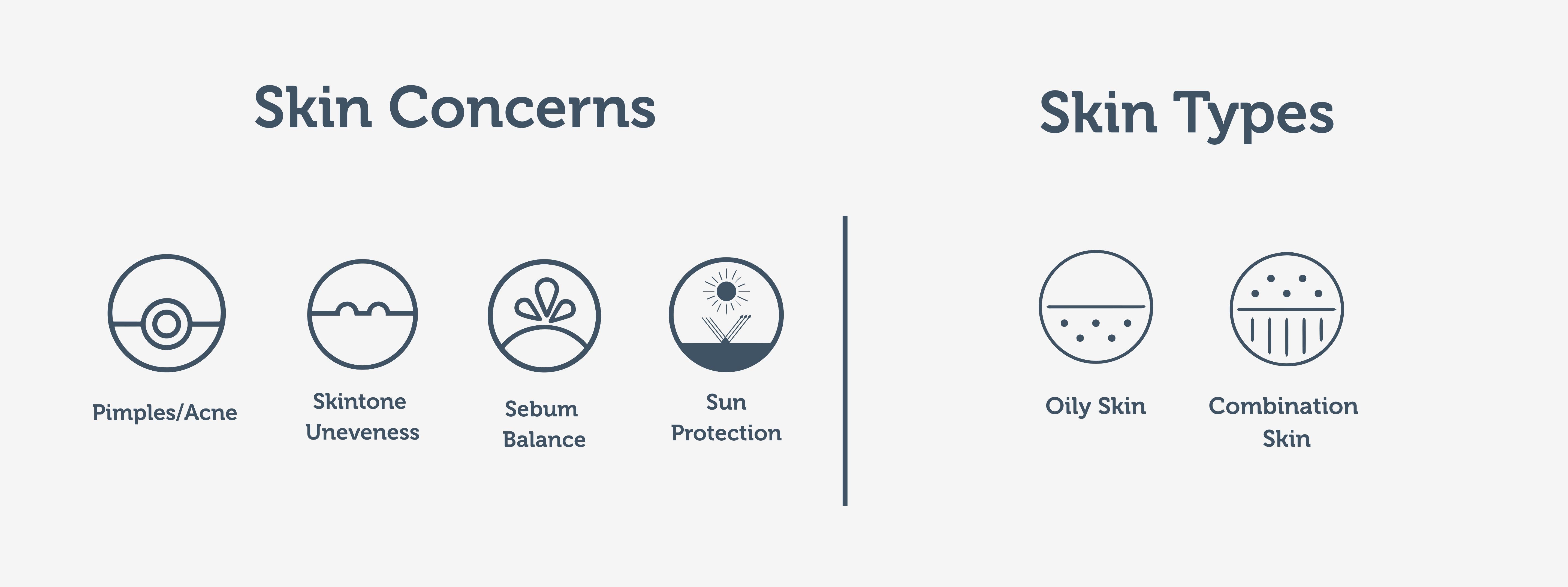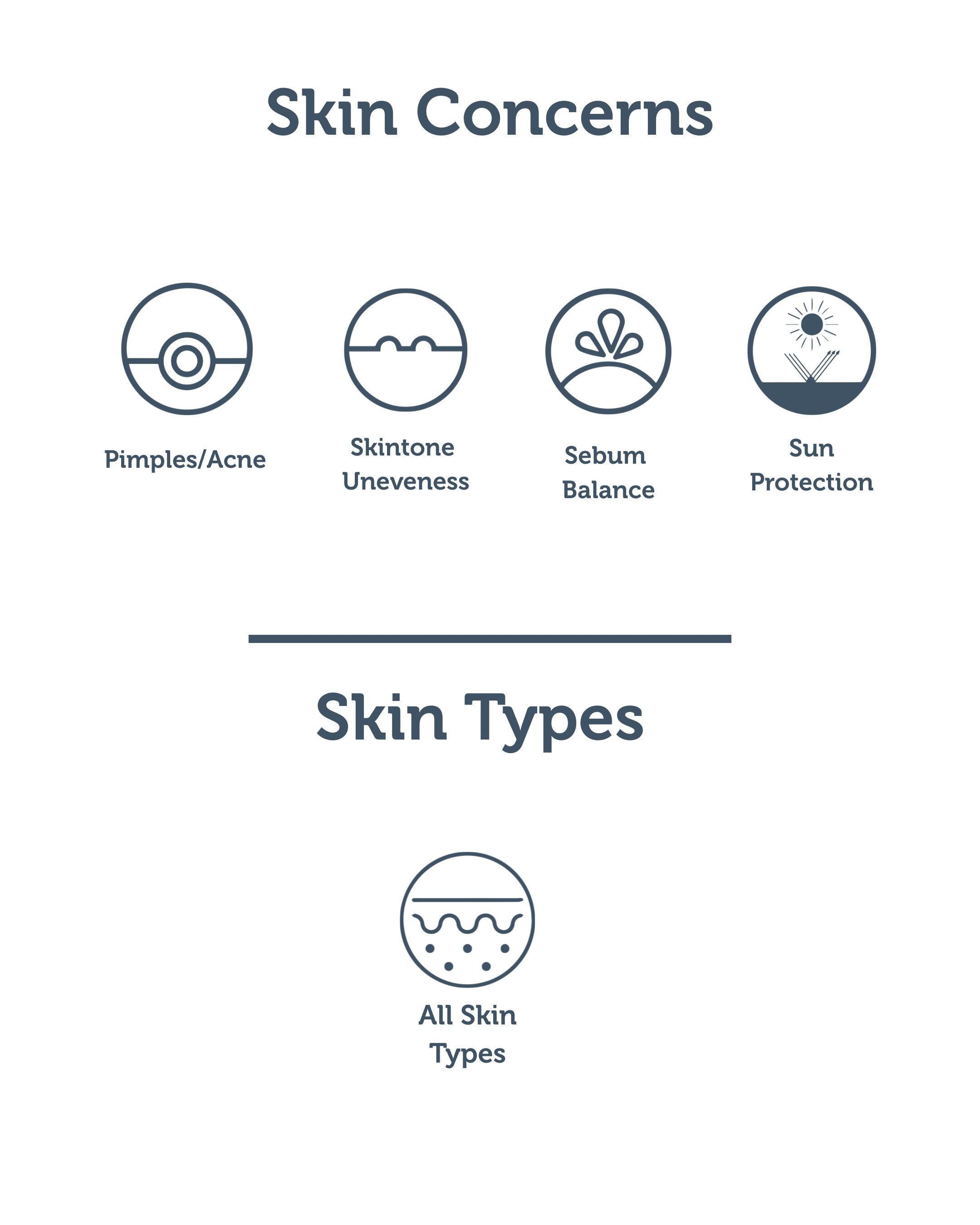 With regular use these products will solve problems such as acne problems, enlarged pores, need for hydration, sun protection, sebum balance and skintone unevenness.